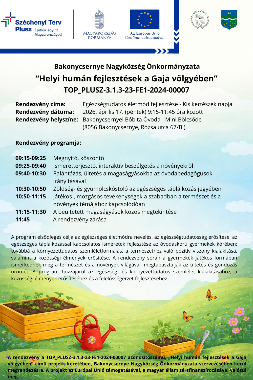 Bakonycsernye Nagyközség Önkormányzata támogatási kérelmet nyújtott be a Terület- és Településfejlesztési Operatív Program Plusz keretében meghirdetett „Helyi humán fejlesztések” című, TOP_Plusz-3.1.3-23 kódszámú felhívásra, és 290.000.000 Ft összegű, 100 százalékos finanszírozású, Európai Uniós forrásból származó támogatást nyert el, melynek eredményeként megkezdődhet a hátrányos helyzetű lakosság humán szempontú fejlesztése a Gajavölgyben: Bakonycsernyén, Bodajkon, Nagyvelegen és Balinkán, településenként szervezett programokkal, rendezvényekkel.